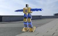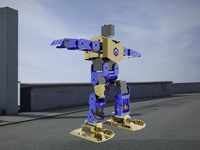 两足教育机器人在总体构型上采用在结构上相对简单,在控制上比较容易实现的串联构型。总体造型采用人体比例设计,具备17自由度。通过24路舵机控制器控制,由17个数字舵机驱动,实现行走等能。