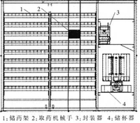 在上位机获取要配发的处方后,将取各味药的次序信息及用量送入下位控制器,后者控制机械手在药架内运动,完成配发流程。其概要流程如下:机械手在储杯器中取出一个空药杯,然后进入储药架,取出每一位药剂;取药结束后,机械手运动至封装器封装该药杯,然后到出药位置,将药杯送出;最后运动回储杯位置等待下一处方。