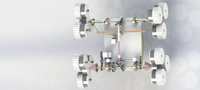 前轮部分:为了增加前轮转弯时的稳定性,对前轮相关部分进行了部分改动。首先,更改前后垫片的数量,使前轮主销后倾,这样,车轮具有更好的自动回正功能。其次,更改连杆的长度,使车轮外倾,车轮转弯时,前半部分重心上移,促使赛车转弯更加稳定。再次,我们通过更改舵机连杆的长度,增加前轮前束,同样增加了前轮的稳定性。
