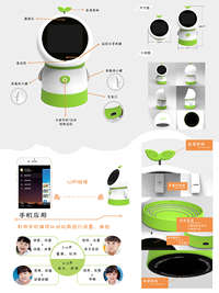 1、参赛作品的设计主题:此款智能玩具适合3—5岁的儿童,它能够在家里陪伴孩子通过孩子看动画的形式和孩子进行语言上的交流实际上是父母通过手机在和孩子对话,让家长在任何时间任何地点都能够和孩子沟通,探索孩子内心世界,挖掘孩子内心深处的想法,从而使父母对孩子进行适当的教育,锻炼孩子语言沟通能力和表达能力,还能够辅助孩子以听故事看动漫的方式学习知识,运用智能技术APP在线链接大型云端处理器可远程视频,监控,无线在线家长在手机端实时了解孩子情况,为家长和孩子之间建造一座沟通的桥梁。 2、作品外观与功能表述:此款玩具外观看起来像个小娃娃头上长得草是一个迷你音响,身子旁的两个小胳膊是音量控制键,为了方便充电玩具的底座是可拆卸的,充电的时候只给底座充电即可,同时可给玩具换上另一个充满电的底座,方便孩子使用,家长不用担心充电线给孩子玩的时候带来的不便。功能上可以陪伴孩子和孩子聊天,孩子可以通过看动画听故事从而懂得一些生活常识和安全知识对孩子的性格也是一种培养,前置摄像头可以随时记录孩子成长片刻以照片和视频的形式通过云端上传到家长的手机里永久保存,使孩子拥有一个愉快的童年。 3、作品的市场前景:现在的孩子大多数缺少陪伴更缺少和父母心与心的交流以至于父母不了解孩子的内心想法对孩子不能进行适当的协助与指导,此款玩具就解决了这一问题,使家长和孩子之间的交流不存在隔阂,能够让家长走进孩子的内心世界探索孩子的心理和孩子做朋友对孩子实施适当的教育对孩子以后的成长和发展起到重要的作用。 |