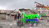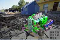 地震是经常发生的灾难,震后救援工作时间紧迫,劳动强度大,工作环境恶劣,危险性高。一般地震废墟现场道路损毁严重,有大量的预制板、砖块等堆积物,幸存者所在的生存空间相对脆弱,大型工程机械无法迅速到达,延误了宝贵的救援时间,为了将幸存者安全迅速的救出,在处理生存空间的同时要避免由于破坏了生存空间结构的稳定性,而引发的二次倒塌,因此救援人员如何第一时间掌握灾区情况,然后向灾区运送相关救援设备展开救援以及运送救援物资解救被困人员显得非常重要,为了解决这些问题我们旨在设计一种可以自主越障、探测灾区情况、运送救援设备和救援物资的救援车.