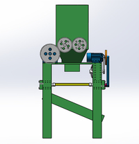 本产品进料口采用垂直方式,油菜利用自身重力进入搅拌轴,在电动机的带动下高速运转,工作齿不断拍打干燥的油菜桔梗使菜籽从桔梗中脱落下来,在工作齿的作用下桔梗也会被敲成零散的枝节。在经过风机充分吹过后,菜籽和较大的秸秆一起进入振动筛,进行第二次分离。振动筛的作用就是将未被吹出的桔梗和菜籽充分分离。总会有一些无法除去的碎末未被除去而随菜籽一起被分离出来,但这些碎末定不会影响菜籽的加工质量。