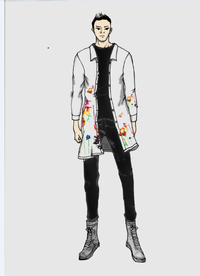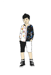 作品名称“莲爱”,寓意无私,纯情,纯真,不染,洁白无瑕的爱,本系列的亲子装三套,男装是中长款衬衫外套,内搭黑色T恤,下身是休闲黑色长裤,女装是上衣下裙的套装,童装是上身小立领休闲外套,下身短裤!颜色上采用黑白为主要的颜色,与身上的儿童画莲花图案相呼应,纯色的运用表现加上莲花“出淤泥而不染”的品质,莲花的作品作者是学龄前儿童,有着最最纯真的童年与思想,他们需要很多的爱来学习,来生活,而爱来自于父母。素材来源