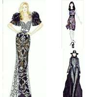 设计主题在侧重花卉方面,在形状、大小和排列上按照形散神不散原则,按照圆空间的变化形状变化区分布,给人以视觉上的遐想,有空灵、古韵之美,又不失性感,最重要的突出女人味。在做工面料上采用雪纺工艺,花的部分运用刺绣的方式,带有旗袍之美,又贴近现代风,其腰部的束腰出,是最为突出女人味的地方,束腰下方又加上一个环状,让人有无限遐想。颜色由上到下黑、跳跃混合色,庄重中不失活泼灵动感,给人深刻印象。