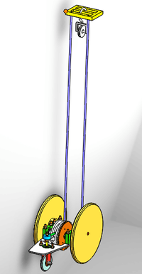 我们设计的这款避障无碳小车实现无碳排放,其动力的全部来源于重物下降带动驱动轴转动来实现运动,以前已有的无碳小车,在控制前轮转向能量来源方面家颇为复杂,这就导致能量损失严重,从而出现运动距离较近,避障越野能力较差等现象。以前的无碳小车结构过于繁琐,在加工制作方面实现都有较大困难,而且加重了自身的重量,不易于转向,避障。而这款无碳小车结构较为简单,省去能量贮存的再利用的结构,直接经过前期计算小车的运动轨迹,确定小车的关键零部件,一次性完成运动,转向,避障。