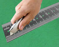 多功能直尺设计是对原有直尺的改良性设计,除了满足其基本的测量功能之外,还增加了裁纸和画圆的功能,延伸其使用途径。其中设置了最大尺寸为297毫米的纸缝,裁切其他尺寸纸张时,我们只需将被裁剪的纸张和直尺相应位置的刻度对齐即可,同时可以将相应大格的尺寸线设计的稍微长一些,缝隙穿过其中,可以方便快速对齐,操作简便,裁切效率高。其次我们在直尺中部钻有一定数量的圆孔(每个孔间隔10mm),绘圆时,用小图钉固定其中一个孔的位置,在其他相邻或间隔的孔中放入铅笔或者中性笔即可绘制10的整数倍尺寸的圆,倘若需裁切圆形纸片时,只需使用画针代替铅笔或中性笔即可,同一般的圆规相比,可以绘制尺寸更大一些的圆,特别适用于一些手工制作类绘画圆和裁切圆的功能。并且量尺寸、画圆、裁纸这三个功能在平时的学习中总是会被放在一块儿使用,我们这款结合了量尺寸、裁纸、画圆三功能得到的产物,将之合理有效的联系在一起,既可以方便携带,又可以高效快速的满足学生在使用过程中的需求。