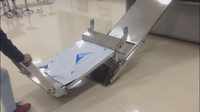 将斜板与小推车分离,斜板搭在地面与运货车之间,将小推车推上运货车,便于小推车的携带。