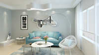 我们选取的是蓝色为主题色调。蓝色是冷色调,但它非常纯净会让人联想到 海洋,天空。纯净的蓝色表达一种美丽,冷静,理智安详与广阔。在蓝色的设计中,可以给业主一下班回到家就非常放松的感觉,可以平静人的思绪,非常符合我们的设计主题。蓝色代表沉稳与女性气质。天蓝色是“安抚色”,是令人安静并且放松的颜色。象征着年轻,青春。因此,将蓝色运用到女性的单身公寓设计中再合适不过了。整个空间在色彩的搭配上非常清新,将蓝色,灰色,白色和谐的搭配在一起,非常符合年轻单身女性的审美。将最美好的青春年华表达在设计当中,年轻又不失雅致,展现给大家一种即便是单身公寓也有别致的美的感觉。