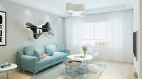 首先,现代简约风格化繁为简、型随机能,简单中求艺术,使设计变得简约而不简单。其次,现代化的生活步伐,使人身心具疲,现代人面临着城市的喧嚣和污染,激烈的竞争压力,还有忙碌的工作和紧张的生活。因而,更加向往清新自然的生活,渴望在家找到温馨、自由,不受束缚的感觉。因此,我们的主题是:慵“蓝”——慵懒的意境+蓝色的色调。我们的设计主要是让工作了一天的业主在回到家后找到一种最放松,最自然,最慵懒的感觉。即便是单身公寓,也会感觉很温暖。主题色调为清新,亮丽的蓝色,并且用黑白灰作为点缀,更彰显出年轻女性的特点。单身的年轻女性,所选的色调比较清新又不失优雅。再加上铁艺制品的装饰,现代感十足,与业主的时尚白领的工作相接轨。