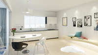 由于是女性住房,所以在家具的选用上就没有采用四四方方的家具,选取的家具都是曲线形,圆弧形,符合女性柔美的特点。并且,在整个大空间的设计上全部设计成全开放式和半开放式空间。在整个空间上不想用过多的实墙遮挡,但是在遮挡上全部采用玻璃墙和纱帘,使空间更加通透,更明亮。因为作为一个单身女性住房,如果是传统式的空间布局会显得非常死板,没有新意。因为单身公寓本身就是一个特殊空间,如果我们按照传统的空间布局来设计,仅仅只是设计了其中的内部装饰,这样的设计对于单身公寓这个主题来说并没有什么新意。如果是这样的设计,那么任何一个空间都可作为单身公寓,没有什么特点,那就没有必要还有单身公寓这一说了。