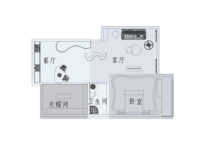此户型为两室的居住户型,风格为现代简约风格。本户型的流线较为简单、实用。具有形成独立却又完整空间,空间功能分布合理的特点;各个房间动静分区较为合理;最重要的是强调功能性设计,线条简约流畅。