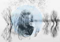 从图片中我们可以看到,在秋天,树木干枯落叶,只剩下一枝枝干枯的树干与枝杈。在河边的树枝将自己的影子倒在了河水中,波光粼粼,,河水随着风的吹拂而晃动身躯,形成了一条又一条波纹。而有这样一个恬静,优雅的小女孩,在水中央抱着膝,闭着眼睛,去闻着感受着大自然的独特芬芳,她亲吻着树枝,抚摸着树干,与这周围的一切显得异常和谐。天空中撒下的花瓣,落在了小女孩的头上,更是突显了这一切的自然,和谐。花瓣的存在,使得女孩更加美丽,而女孩对自然的喜爱,才是她最美丽的地方。