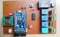 本款产品以STM32F103C8T6芯片为控制核心,继电器作为转换电路,以手机端app发起指令,硬件部分WIFI串口接收到指令,传给主控芯片STM32F103C8T6,主控芯片对指令进行解析,把解析出来的指令和对方协议好的指令进行对比,最后主控芯片就可以根据这个指令控制外围继电器、电机,继电器可以驱动家里的电灯、风扇等,电机可以用来驱动家里的门、窗帘。只要用上合理的机械封装,即可实现简单易操作的app-物联系统。