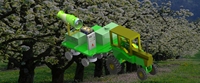 目前我国处于果园施药技术与装备落后的状态,导致农药施用量大,污染严重,增加了落果、次果及劣果的结果率,严重影响果品品质,同时降低了加工品的合格率。我国果园多采用低矮密植型种植模式,由于其可显著提高果园的经济效益,正在被越来越多的果农所认可并决定长期采用。但是低矮密植型的冠厚接近行距,果树间枝叶交接,造成果园密闭。农机具很难进入园内,病虫害防治难度、劳动强度加大。立足于现有国情,我们研发出了适用于我国国情的专业化、系列化果园植保机械