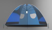 帐篷内置伸缩杆,一体化成型,快速搭建,在杆的底部设置了Led灯,顶部设置了双开关和定位灯,当伸缩杆推上去,按动开关灯会亮起,当伸缩杆推至最顶端,则定位灯亮起,定位灯的设置以便在恶劣的环境也能快速找到所在位置。五边形框架,在其中一面设置拉锁门,减少以往门的占用面积,节约空间。可视窗设置在门正对的两个面上。传统帐篷设置的地钉需要花费很大力气,我们把地钉做成金属的螺旋形状,改变了原始受力方向,使手柄与螺旋地钉垂直,起到省力的作用。