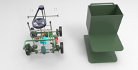 3、不同装置实现各大不同功能,搅拌装置解决了石灰水沉淀的弊端,使得树干喷涂更均匀,传动装置即实现了喷头的上下移动,又带动了搅拌桨,使得动力的利用更高效充分,装置底部的缓冲弹簧使得装置在崎岖的地面上仍能保持平稳前行,以达到节省时间,节约人力的目的。