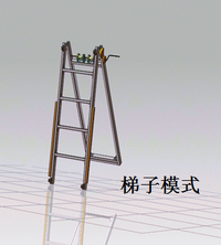 便携式多功能环保小车主要有链传动,导轨滑块机构,手动控制机构三部分组成。由手动控制货物平台的上升与下降。通过手动拉伸与收缩实现梯子的收放,通过可变动角动支架可以改变小车的形态,实现货物的拉运。为了保证货物的平稳性,在整体上还安装了可拆卸的支撑杆。