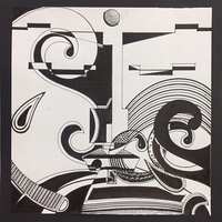 这幅设计作品灵感来源于一尊雕塑佛像作品,在原有的佛像五官加以几何形状的变化。让原本的佛像带有思考的未来感