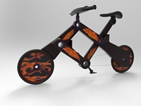 本设计主要在现有的折叠自行车的基础上作出修改与创新。现有的折叠自行车折叠后的体积都比较大,所以要首先在合理的构造的前提下思考如何在减少折叠后的体积这一点上下手,不只是简单的的直线伸缩,还利用各种的机构,在传统自行车的基础上,大胆地将自行车骨架由管形材料设计为条形材料,为我们的创新设计创造出更大的思维空间。本设计在结构上做了很大程度上的改进,外形上有了很大的突破。折叠后比以往的设计体积更小,折叠方式更方便,重量更轻,更方便包装。
