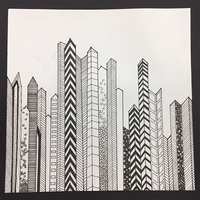 这幅设计作品以箭头为灵感,每个大箭头里的图案都有变化,有点像领带,又像是大都市的剪影,高楼大厦。