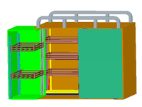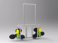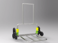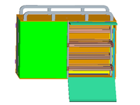 本设计提出一款利用导轨机构、旋转机构、铰链机构制作的快递车厢和一款利用三星轮机构、万向轮机构、棘轮机构的爬楼梯拖车。该货箱包括可移出货柜、可旋转货柜、带上下门的侧柜三个部分结构。可移出货柜利用导轨机构实现移动,可旋转货柜利用旋转机构进行旋转,可旋转90°,赛上下门的侧柜中,上门利用铰链机构旋转90°,下门旋转后可搁置在爬楼梯拖车上,使之与拖车形成一个斜坡,利用此斜坡可以搬运一些较重的快递。可移出货柜、可旋转货柜、带上下门的侧柜中都装有金属货架,金属货架利用弹簧卡扣和带卡扣的立柱支撑,因此所有的金属货架间的间距都可以根据快递包裹的体积大小自由调节。爬楼梯拖车包括三星轮机构、万向轮机构和棘轮机构,三星轮机构使它具有平稳上楼功能,万向轮机构使它能在平地上自由行走,并且万向轮还具有锁紧功能,因此整款拖车可以实现爬楼、平地行走两用功能。拖车的拉杆可以适应不同身高的人群,他可以根据使用者使用拖车时的舒适程度进行上下伸缩调节。拖车底板采用二三三二分节方式,有效提高了其承载能力。