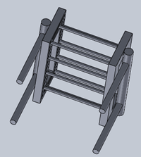 本装置中采用改装版的输送链为传动装置。与摩擦型的带传动相比,链传动无弹性滑动和整体滑动现象,因而能保持准确的传动比。而与齿轮传动相比,链传动安装精度高且成本低。本装置中是在链条的一侧安装设计一个空心钢管连接器,共两条链条,在两条链条间安装空心晾衣钢管。