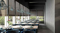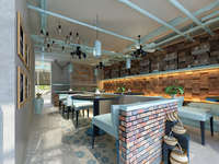 材料主要与环保节能为主 如木制桌面 无有害元素 空间的造型结构相对的简单简化 给人轻松自由的感觉 空间里除了灯饰带有明显的工业风以外 其他都带有地中海的特色
