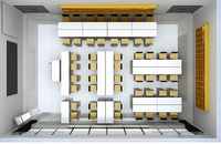 设计方案:新型课堂,包括安装在课桌上的红外传感器组和超声传感器,红线传感器组的输出端连接红外传感器计数模块输入端,红外传感器计数模块的输出端连接处理器的第一输入端;超声传感器组的输出端连接超声传感器计数模块的输入端,超声传感器计数模块输出端连接处理器的第二输入端;处理器的第一输出端连接抬头率过低报警器输入端,处理器的第二输出端连接数据储存设备,处理器的第三输出端连接作为显示器;电源的输出端连接处理器的第三输入端;使用时,通过座位显示器显示座位上学生的抬头情况,数据储存设备存储抬头率,抬头率过低报警器对抬头率过低时发出警示声音。本实用新型具有结构简单,提高听课效率的优点。