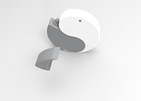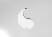 这是一个外观似八卦图的早晚霜瓶设计,首先黑色是很鲜明的代表晚霜,白色代表早霜,这个早晚霜瓶可以分开又可以结合,因为里面内置磁铁,可以吸附,分开之后,大家可以倒放,像一条小鱼,可以有一个很好的装饰效果,这是挤压是的瓶身设计,曲面边缘带给人更舒适的体验感受。