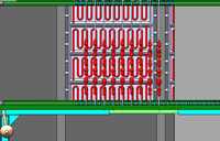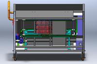 本设计名为链式自动烤串机,是以链轮带动链条传动实现烤串缓慢的围绕电热板转动,使其受热均匀,并达到烤串成熟为止。由于本设计链条是水平传动,故设计上下两个链托,链条安置在链托上,以防止链托因自身重力影响而脱落。上链托与机身支架横梁固定,下链托安置在升降台上,可随着升降台升降,已达到可以烤制不同规格烤串的目的。机身右侧安置油箱,与上下链托的右侧部分相交,当烤串经过时,与刷油滚筒上的刷毛接触,达到刷油的目的。机体中部安置电加热板,作为热源提供热量。左侧安置调控装置,以调控加热板的使用节数、温度,以及电动机的转速。机身底部安置有万向轮,方便烤串机的移动。