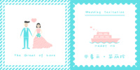 灵感来源于电影《恋恋笔记本》中男女主角坚贞不渝的爱情,直到死亡也没能把二人分开。婚礼主标识选用了稳固的轮船和锚,象征着美丽的爱情一帆风顺,像船锚一样,坚如磐石、稳如泰山,请帖背面是一对牵手的幸福恋人,“The Great of Love ”寓意二人能够共同面对未来的一切艰难险阻。请帖的整体采用了梦幻的蓝色,同时也代表了纯洁的爱。请帖内部采用了让人怦然心动的粉色,用来比喻新婚的温馨,同时也增添了浪漫的气息。