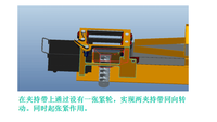 主要创新点有:通过以在输送带两侧上设有挡板,以至于垃圾在输送带的作用下能够有序向前推移,然后在输送带尽头通过上方的夹持带进行夹持,方便夹持带下方的刀具对垃圾袋进行切割。切割完毕后垃圾袋随着夹持带输送后收集,而垃圾则掉入螺旋轴内进行挤压,剪切,最后输送出去,进行下一步筛选。