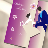 请柬为翻折页的形式,折叠尺寸为12.8cm*18.3cm,展开为18.4cm*32.3cm,材质为覆膜铜版纸,材料易得,价格低廉,请柬将新婚夫妇以剪纸的形式进行了组合,请柬打开时两人互相凝望,请柬闭合两人互相牵手,既浪漫又有创意。