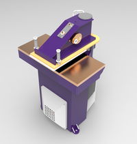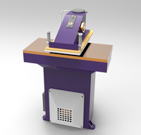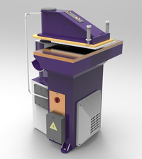 转动手柄调节摆臂至工作台间的距离,操作手柄上的按钮可使摆臂产生冲裁运动,冲裁时,只要双手操作手柄,摆臂即快速向下冲裁。当刀模受到冲裁力后,液压系统压力升高,冲程控制机构自动识破冲裁材料的厚度,一旦刀模切透材料的厚度,摆臂即自动向上返回,停止在由手柄设定的位置上。