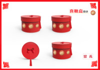 喜糖盒的材质是纸质,外观就是一个简单的圆柱设计,在底部还有盖子加了一层加固设计。糖盒的主体色也是大红色,在周围又加了金色喜字的花纹设计。封盖呢,我加了一个流苏还有蝴蝶结,为了避免中间掏出一个空洞(为了连接盖子内部和外部)在外面看起来不好看,所以在上面加了一个蝴蝶结。蝴蝶结呢,主体色也是大红色的设计,这样组合的话,满满的少女心有没有。糖盒设计的外观虽然很简洁,但是很实用有木有,你不用费力的去拉,只需要轻轻的拉一下流苏,糖盒就开开了。