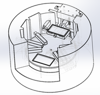 我们的自动手机贴膜器采用了机械设计中的槽轮机构,螺母丝杆机构,普通的旋转机构为主体,加上电机,滚筒毛刷,特制箱体等辅助配合构成完整的机器。其中槽轮的主要作用是通过旋转,把贴膜中的清洗,贴膜,压模三个重要过程紧密连接起来。槽轮上装有我们设计的载物盘结构,可以根据客户的不同需要更换匹换载物盘上的手机膜套装置。螺母丝杆机构,通过电机的正转带动螺母,实现立式上下平移,用于压模块的压模动作;旋转机构,与压模块连接,通过旋转达到撕钢化膜保护膜的效果;此外,压模块中可装卸设计好的卡膜模具,卡膜的力远大于旋转撕膜的吸附力以及旋转的离心力,防止手机膜被甩掉,此外卡膜模具与载物盘的模具成配套,防止贴歪。特制箱体是为了保护机器内部运作的外壳,以及箱体设计为与各工作平台紧密连接的结构,固定机器的中心位置,此外箱体上部分采用半透明的特制塑料,达到工作透明度,防止意外发生。