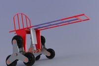 对传统爬楼车进行了运动分析和受力分析,发现它无法解决重载上楼的问题。然后,我们考虑对这种爬楼机构进行加装动力的改造,以达到助力爬楼的功能。最终我们采用电控液压驱动装置达到助力起重的目的,通过开关控制电机驱动压力油泵往外泵油,通过单向阀管道压入液压缸内从而达到顶起重物的目的。为了配合液压系统,我们还具体分析、设计了一系列机械结构曲柄滑块机构,齿轮机构,凸轮机构等等。在平地前进阶段,人施展的力主要是为了克服摩擦力,使小车前进。