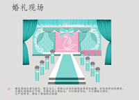 婚礼现场色调为蓝色,粉色为主,所展示出来的画面显得更加温馨,给你很舒适的感觉。在婚礼现场的正中间,有婚礼的主要标志,与主题配合到位,庄严而神圣,增加了现场的活泼感