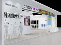 侧立面的橱窗展示区内蓬面和地面用水面波动的图纹创意,最终用线连接体现动感。使空间生动活泼,符合年轻女性的心里追求。