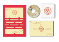 此外,我还设计了系列的光盘包装,婚礼卡片,以及餐巾纸,书签等等与其组成相呼应,整体都是使用了比翼鸟和连理枝两种元素,尤其在工笔画中禽鸟活跃之态、花卉芳艳之色更增添了新婚吉祥欢喜的氛围。同时工笔画的应用也为其增添了古典艺术感,不落俗套。