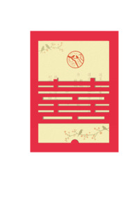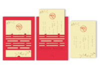 在这个灵感的激发下,结合中式婚庆的喜字,我首先设计了一个喜帖,它是采用了抽取式方式,封套是由条形抽象化的双喜字构成。低调又有内涵,而且恰到好处的遮住了内页的文字信息,待这一封喜帖给予宾客,宾客从“囍”字中抽取出邀请页,既是惊喜,又是欢喜。用一种创意的、美好的方式将新人们的婚礼喜讯传达给他们的亲朋好友。在喜帖的内页,我选择了较为优质的原色钢古纸,这种纸表面有纹理,纸质较厚,在其上印上logo和图案,复古、典雅又富有强烈艺术感。