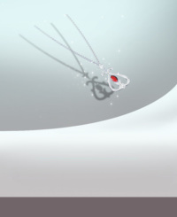 项链的设计:海豚外形的铂金和红宝石结合,构成心型的结构。体现出了一种高贵典雅的气质,最适合追求美好爱情的人佩戴。表达出了甜蜜而美好的爱情,忠贞不渝的爱情。