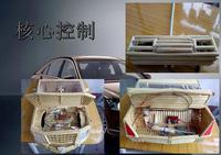 我是根据汽车上面的尺寸按比例制作这辆车是完全靠电池驱动的,在驱动轮也就是后轮装着一个传动比较小的变连机构并有一个小型马达驱动,在引擎盖的下面有一个遥控器的信号接受模块,而且在这辆车的,前后方位置上装着灯光,以及车辆内部一样有着室内灯这样,是由另外一块锂电池提供电量,用以照明的。这里面有一个创新点,那就是这辆车当你用外力去推它,而不是用遥控器去控制它移动的话,是不会动的,就像拉上了手刹一般,不用去担心它会在坡道的时候自己滑落下来。