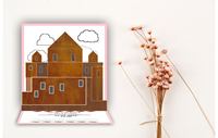 这个请柬的名称为“立体教堂”,顾名思义,这个请柬是立体的,打开请柬,一座立体的教堂就出现在你的眼前,让人有种惊喜的感觉,这也是它不同于别的请柬的最大的地方。在人们的心中,教堂是一个神圣的地方,是人们心灵慰藉的场所,因此他们会对教堂有一种莫名的信任感与肃穆感,其次,西方的婚礼首选场所就是教堂,教堂保佑了一对又一对的新人,这个神圣的地方深深吸引着各国的情侣们。