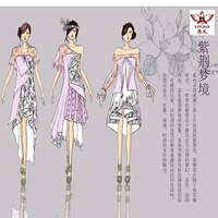 服装整体裁剪方法主要采用了立体裁剪与平面裁剪相结合,以富有紫荆梦境的想象创作,制作手法上主要采用印花,轻透印花雪纺、悬垂感较好的印花面料和紫荆花纹运用一制造出紫荆梦境,散发出大自然的梦幻、柔美、浪漫气息,下整个系列服装:主打面料紫荆花纹印花就像紫荆花下大自然的梦幻,淡淡的紫荆花,那飘零在地下的花瓣,显得是那么宁静和柔美之境。紫荆花纹烘托着穿者的宁静和柔美气息,淡淡的紫色就像一串串的紫荆花朵绽放的格外动人,各款式都分别运用到飘逸轻透印花的雪纺与精美的紫荆花纹的图案,突出紫荆花下大自然的宁静和柔美气息,紫荆花纹制造出紫荆梦境的亮点,各元素相得益彰与自然融为一体,提升了服装的整体格调。这体现在于: