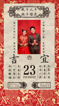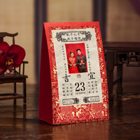 创意来源是日常的一张老皇历,寓意喜结良缘的那一天既是一生中最珍贵的一天,也是一辈子里平常的一天,希望相爱的人一颗平常心携手走过生命里的每一天。