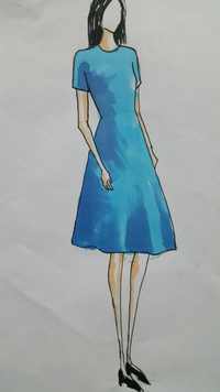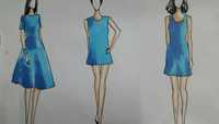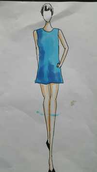我这次的灵感来源于天空中的蓝色陨石,蓝色的陨石给人一种纯净灵动的感觉。陨石的形状千姿百态,把蓝色陨石的颜色和形状运用到服装上,给服装赋予了一种梦幻的感觉,穿着它让人有种翱翔天际的感觉,回归自然的感觉,款式基本是连衣裙,给人一种干练的感觉。更能希望展示女性追求美好没追求心中永不消逝的梦想。整套服装的设计在和谐的韵律中再现优雅,既注重细节又不失含蓄。