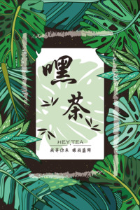 “嘿茶”的主题风格是清新,最初是以白色为背景,后来发现白色凸显不出海报中的图案,最后定黑色为底色,以绿色为主色,以黄色,红色,粉色为辅色,色彩效果比较靓丽,其目的是为了吸引人的注意。海报中的图案也有一层含义,“花”代表花茶,“水果”代表果茶,“叶子”代表茶。这样的色调与图形的搭配,既凸显出海报中的图案,也不失清新的感觉。