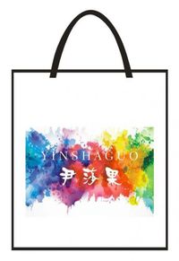 外观和功能:本产品设定为“尹莎果布艺”中的宣传卖品“尹莎果”帆布包。在颜色搭配上,该产品的手提部分采用黑色手提颜色,解决了背包在使用过程中易脏易污损的环节。该产品的包面部分大胆的使用中国元素的“泼墨”设计,彩色泼墨色彩冲撞感极强,中间印有白色“YINSHAGUO尹莎果”字样,与彩色中国元素的“泼墨”完美结合,黑色与彩色的相互映衬,使包包的时尚感加强,与当代人的时尚追求相结合,完美的迎合了消费者视觉上的需求。在外带背包时,可以吸引旁人的眼球,有一定的渲染力。在背包设计上:鉴于以往帆布袋尺寸采用2.5公分手提:“背着累、背着重”的缺点,有区别于以往帆布袋使用,该帆布袋手提部分尺寸采用3公分宽手提,距包口高度约为22公分,使用户在使用过程中,手部感轻松。背包大面积颜色采用本色,包面尺寸为35宽×40高,视觉上舒适感极强。包面材质使用粗布材料,一方面突出“尹莎果”布艺感,另一方面有便于客户清洗。