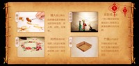 海报背景采用的精致古典书卷显得格外有质感。特别的木质边框为背景两侧增添一丝传统气息。整个海报采用了暖色调,恰好与海报中的“春节”相互呼应。